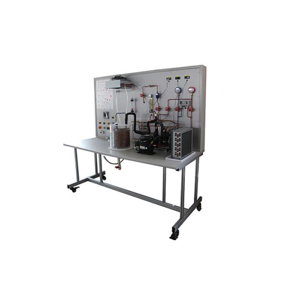 This trainer is used to study the practical device and working principle of the heat pump air conditioning system operation, in-depth study in a heat pump system, four-way reversing valve and the operation of other components.